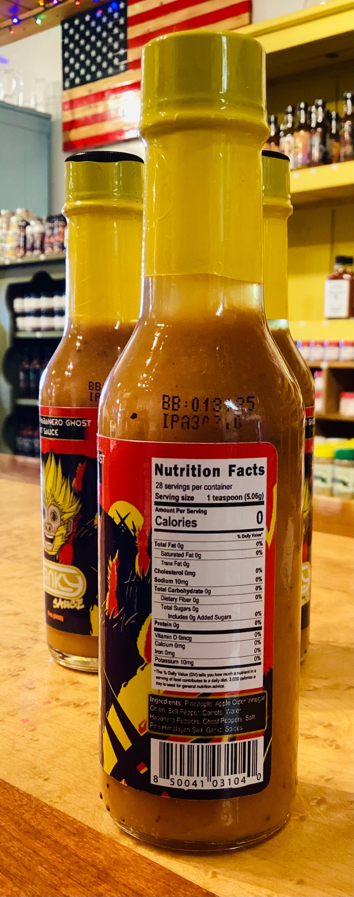 Ingredients: Pineapple, Apple Cider Vinegar, Onion, Bell Pepper, Carrots, Water, Habanero Peppers, Ghost Peppers, Salt, Pink Himalayan Salt, Garlic, Spices.
