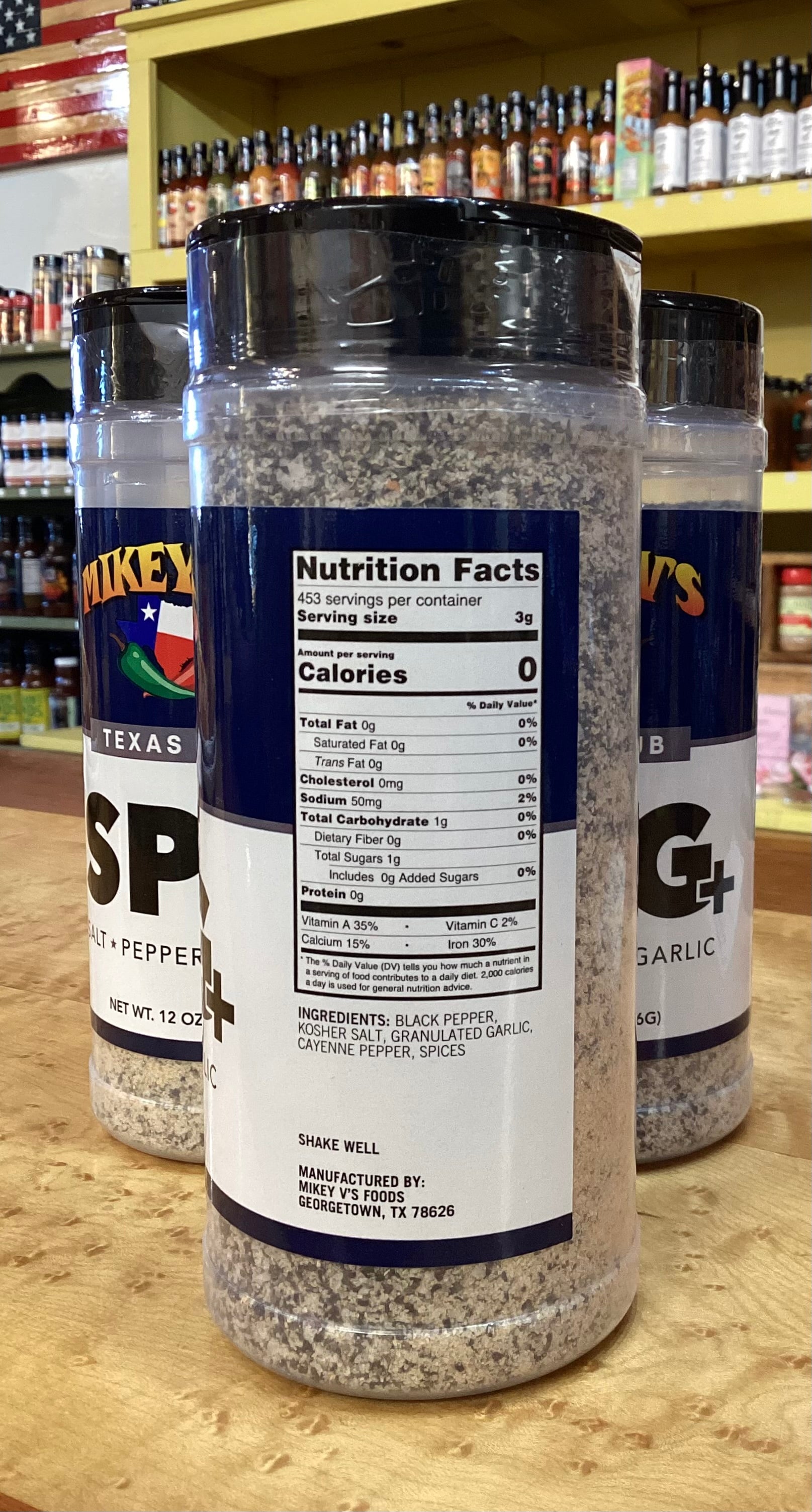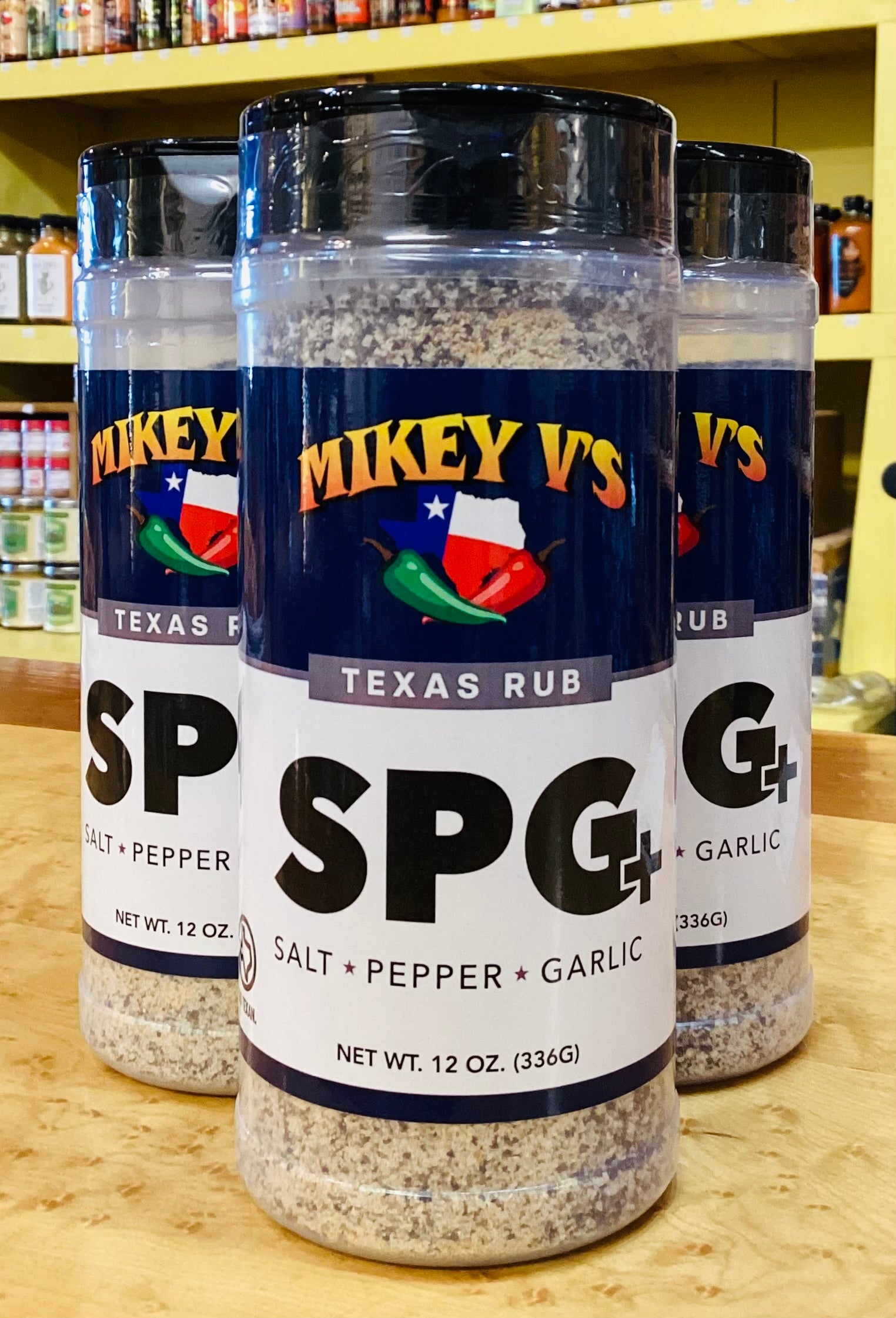 Mikey V’s SPG+ is a delicious blend of spices using the finest quality salt, pepper and garlic and a few other secret spices. This can be used as a rub for your meat smoking or as a seasoning on just about everything you cook! Try it on your beef, chicken, pork and veggies! Made in the USA, in the great country of Texas!