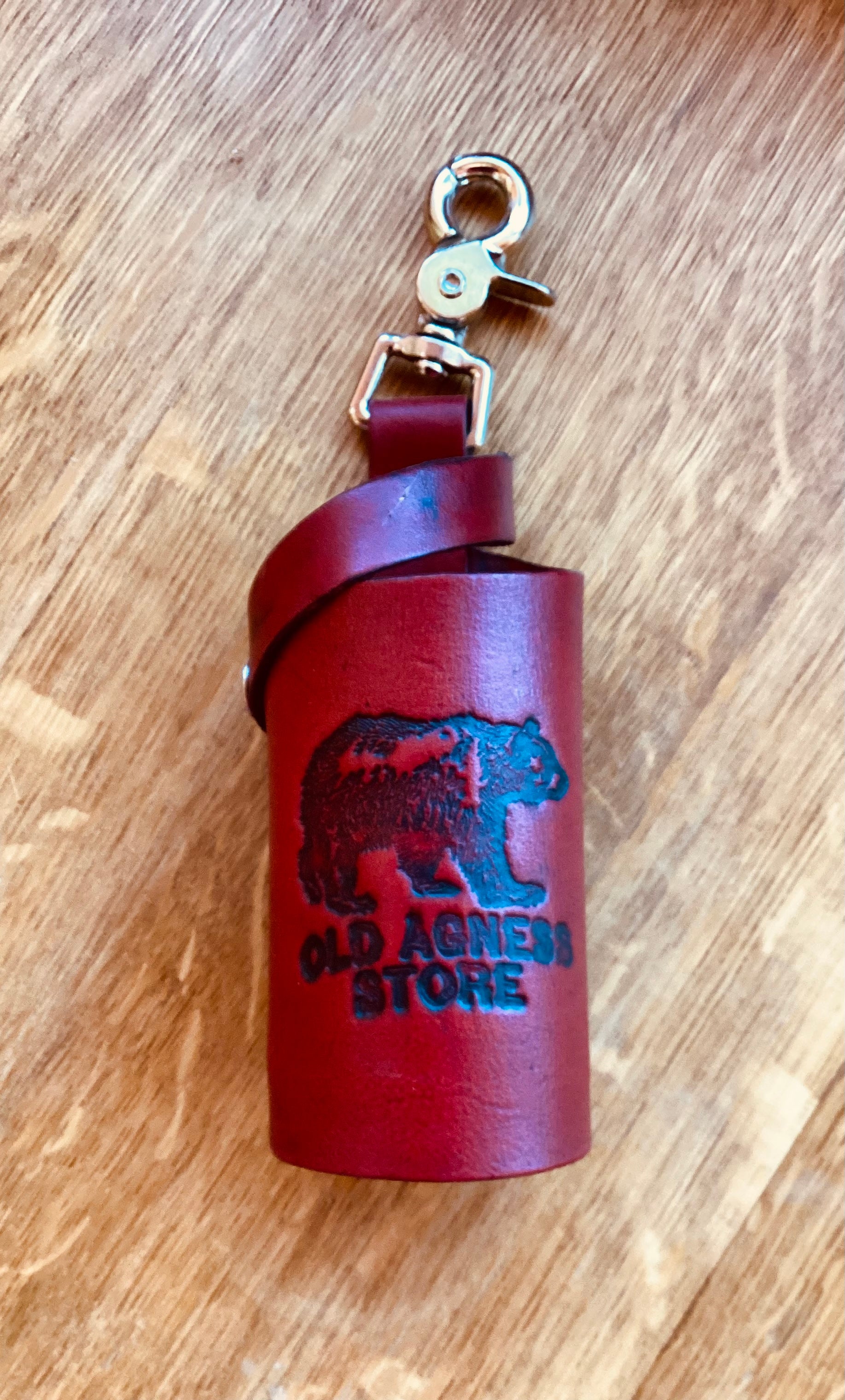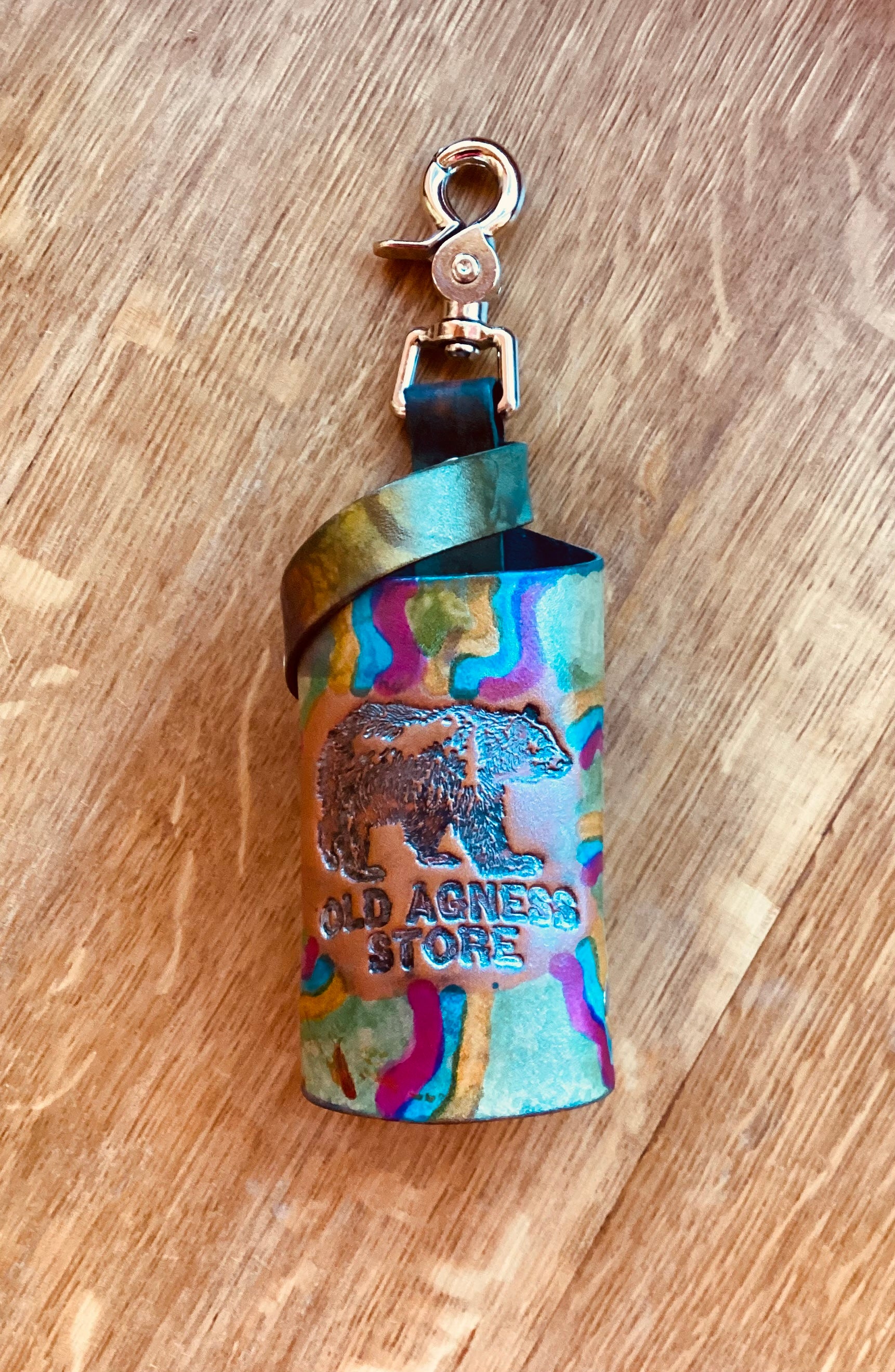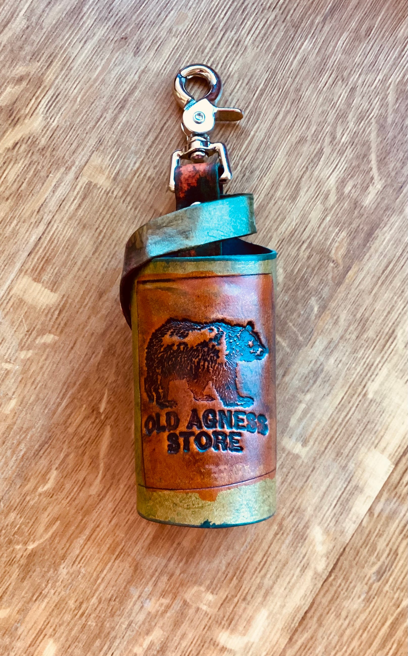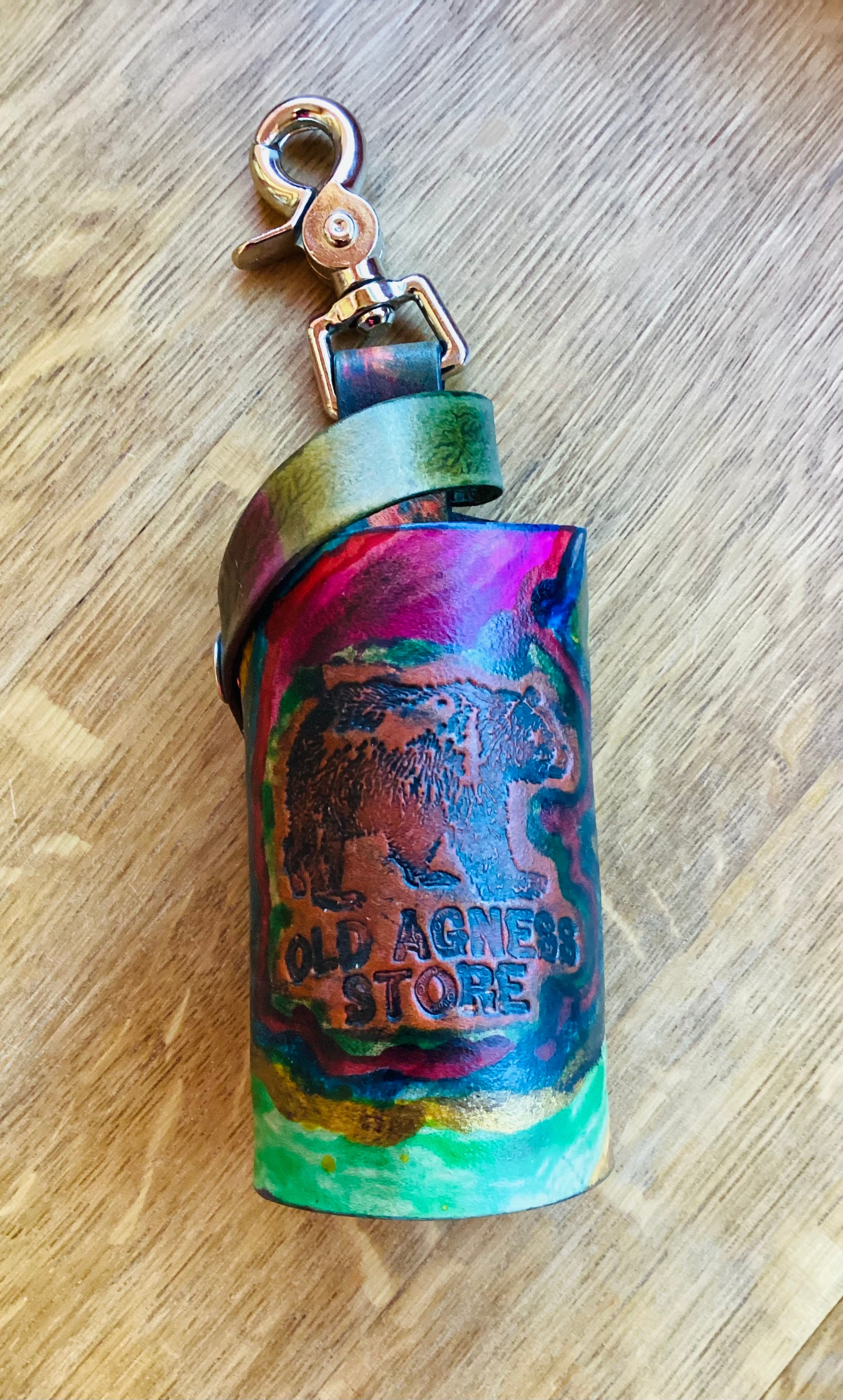 Our Holsters are hand crafted from New Leather, are embossed with the Old Agness Store Logo and are available in three selection: Red, Tan or the new kid on the block…TIE DYED!